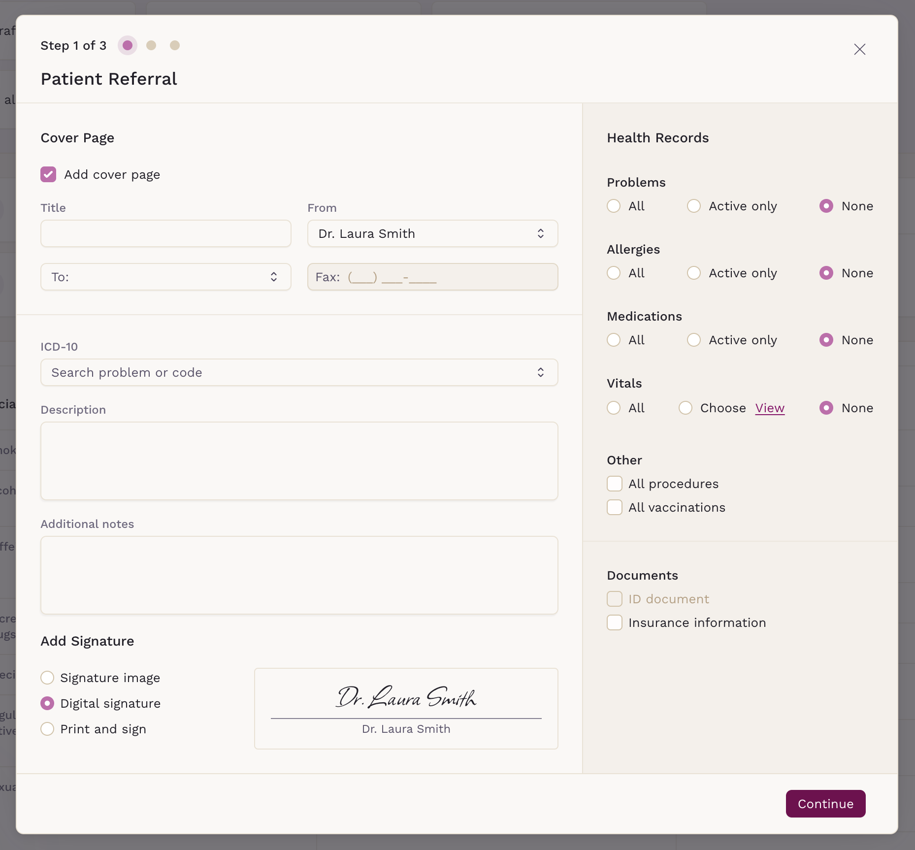 This functionality ensures that you can quickly and effectively create detailed referral documents, encapsulating all necessary patient information in a professional and readable format. As we continue to innovate and expand our platform's capabilities, stay tuned for our upcoming native fax feature.