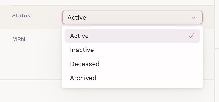 - Archived: Use to hide old or irrelevant records without deleting the patient.