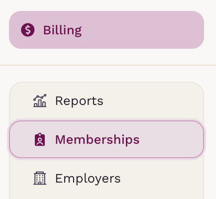 Click on Billing at the main menu and choose Memberships from the submenu.