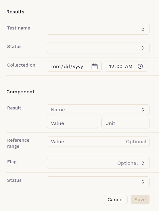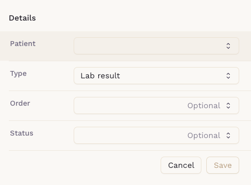 - Patient: Select the patient the result belongs to.