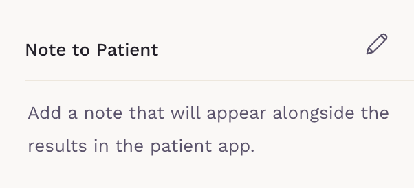 - Note to patient, which will appear with the result in the SigmaMD Patient App. The patient will be notified.