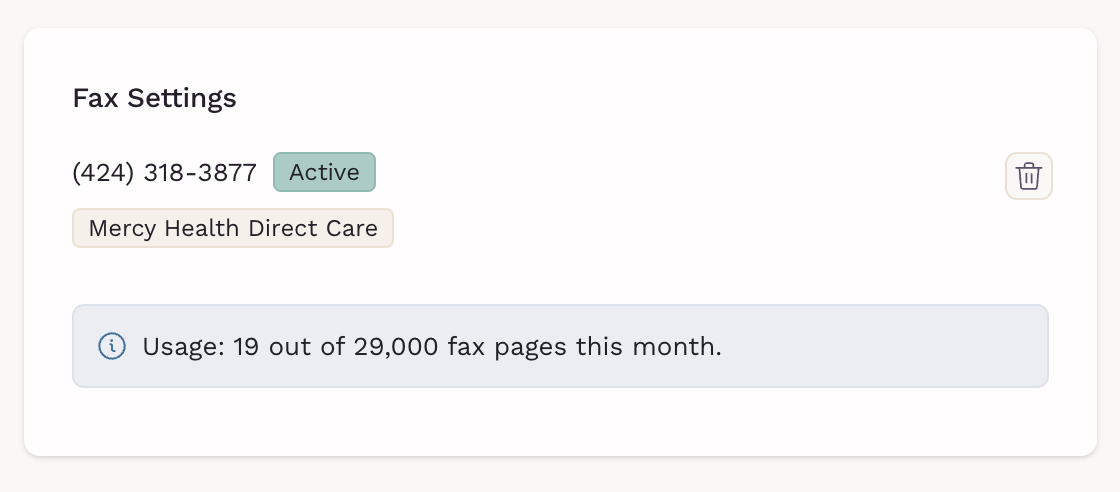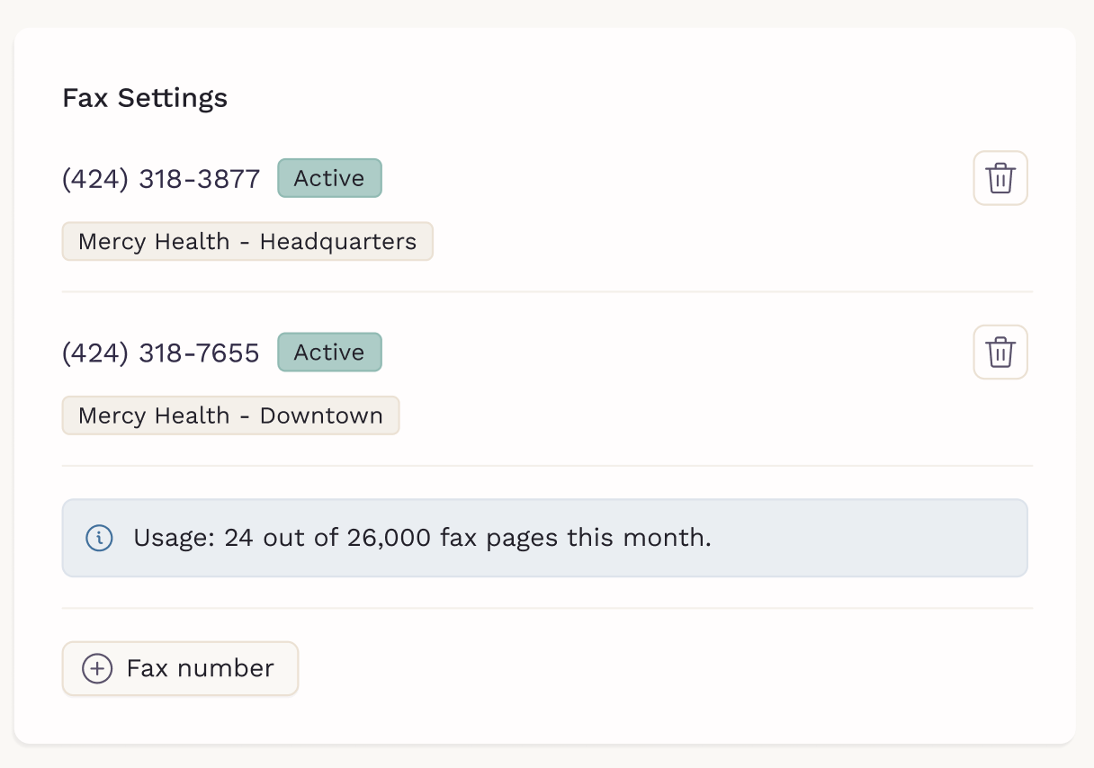 For multi-location practices that prefer one fax number per location, you can repeat this process using the Add fax number button.