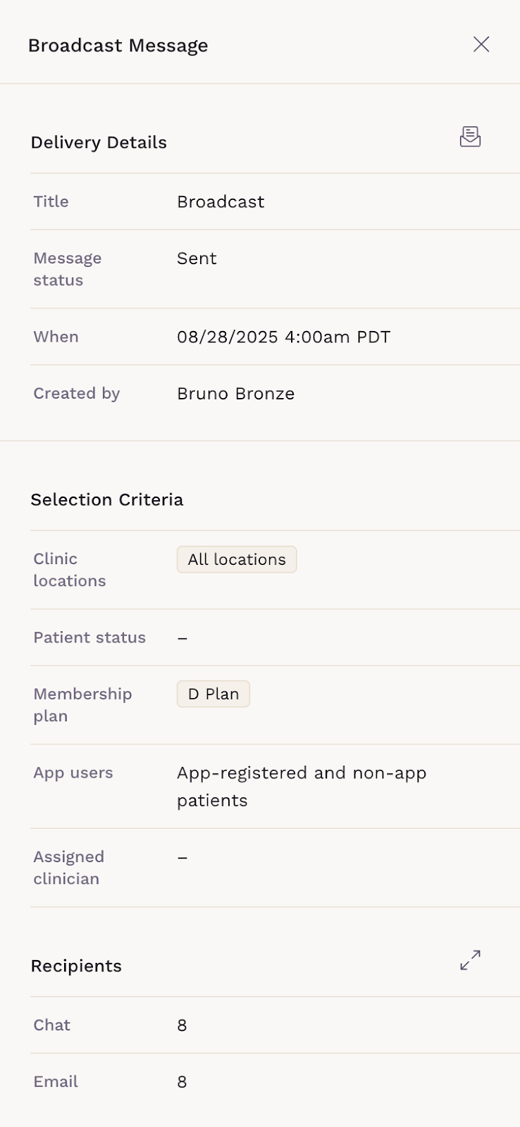 After sending a broadcast, you’ll want to know how it performed — who received it, and whether anything failed to deliver. Here’s how to check.