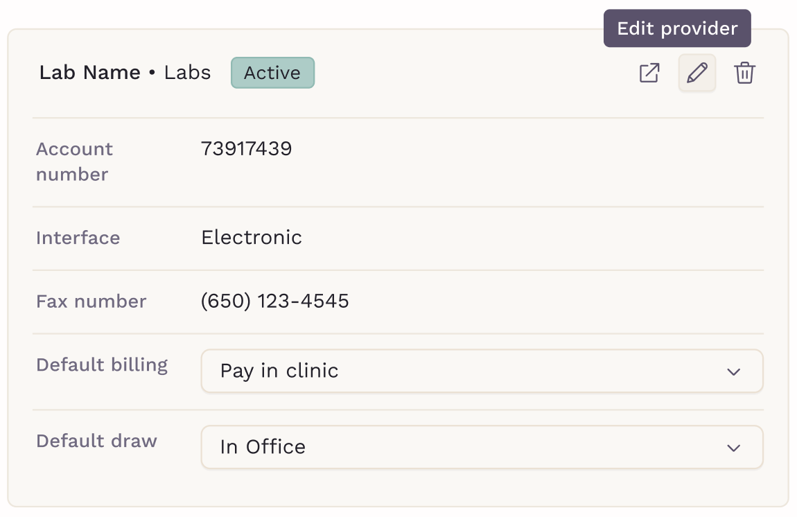 Changes are applied immediately and will reflect in all future orders sent to that provider. It’s recommended to verify that the updated details are correct before submitting new requests to ensure results and reports are properly routed back to your practice.