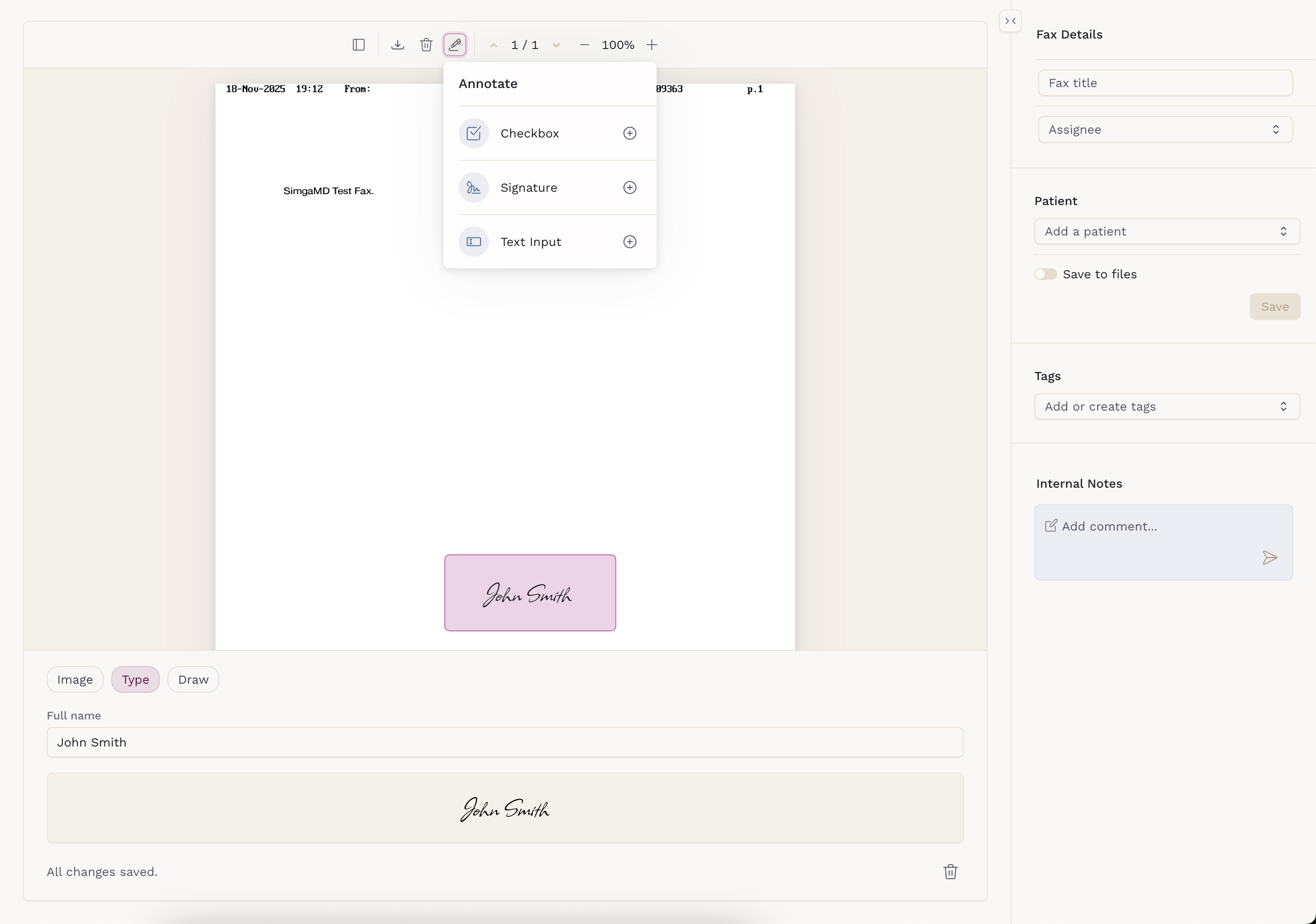 The fax experience has been redesigned for clarity and speed. The fax viewer now: