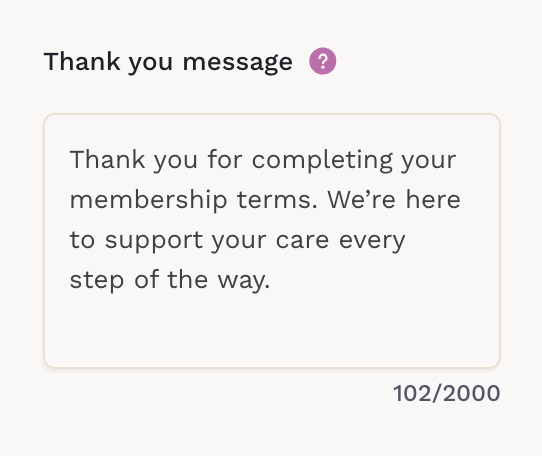 A message shown to patients after they submit the form. This can include follow-up instructions, next steps, or a simple confirmation.