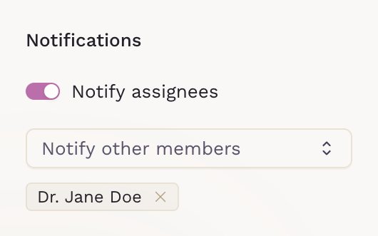 Enable Notify assignees to alert clinicians when a form response is submitted.