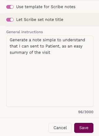 - Under Use template for Scribe notes choose how Scribe will set the note title: