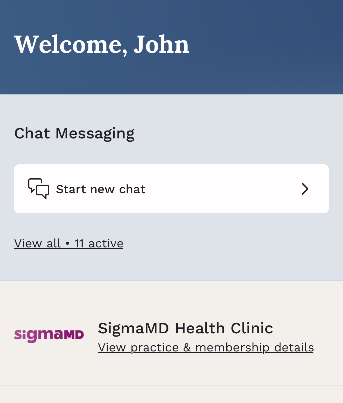 - A chat shortcut with an active chat counter helps patients quickly return to ongoing conversations.