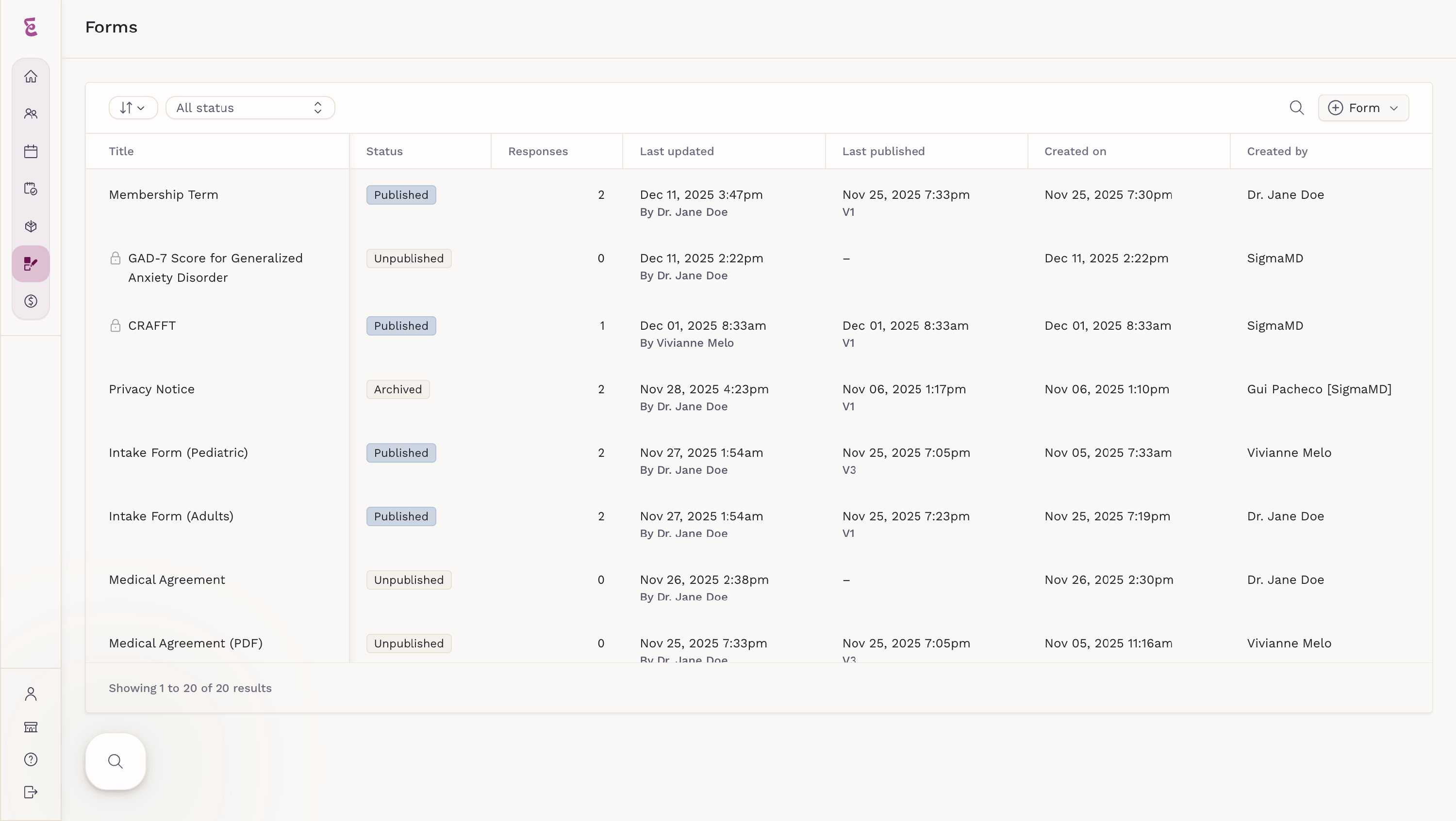Managing forms over time is just as important as creating them. SigmaMD lets you archive or permanently delete forms you no longer need, helping keep your Forms list clean and organized without losing access to important patient records.