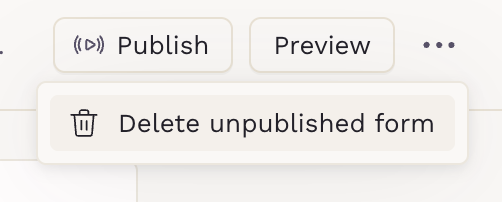 Once the form is unpublished, you can permanently delete it. Deleting a form removes it entirely from your Forms list and cannot be undone. This option is intended for forms that were published by mistake or never actually used.