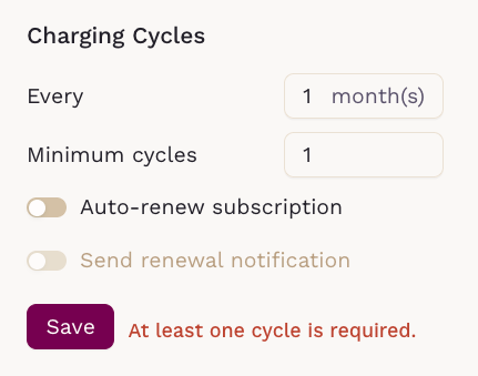 - Create a monthly charging cycle and disable Auto-renew subscription