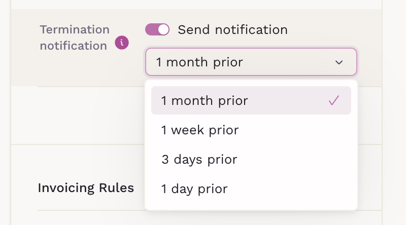 Click on "Edit termination notification" to manage it.