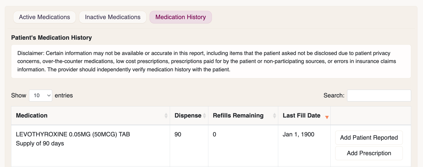 SigmaMD allows you to retrieve a patient’s medication history from Pharmacy Benefit Managers (PBMs) through DoseSpot.