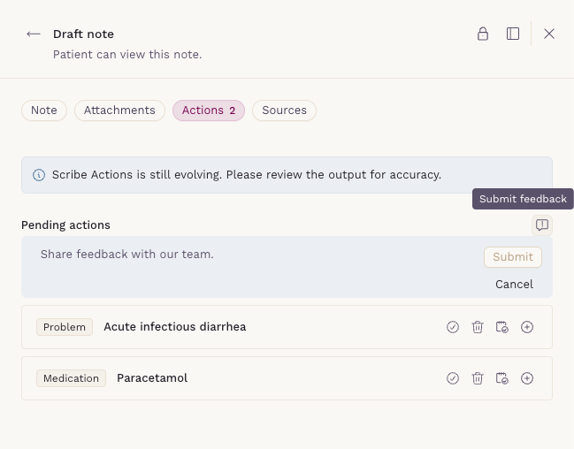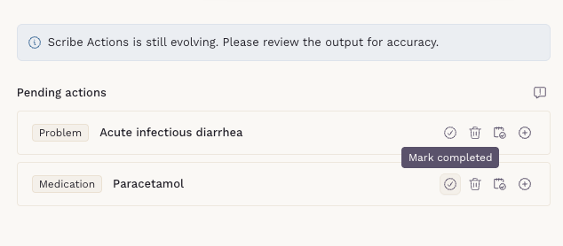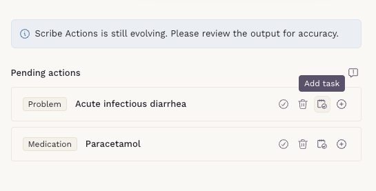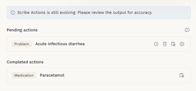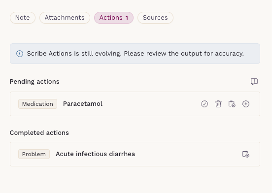- Scribe Actions is only available for notes generated using Scribe.