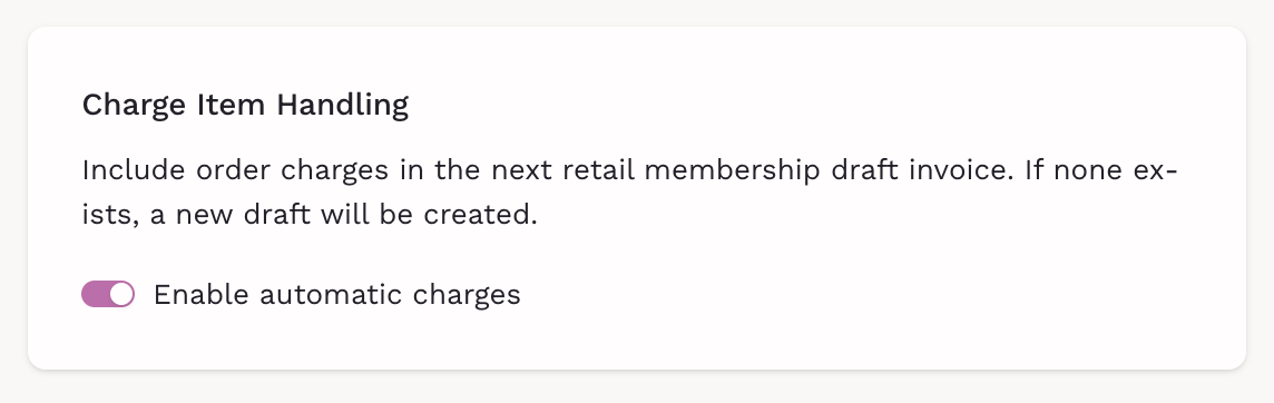 When enabled, eligible lab, imaging, and dispensed medication charges are automatically added to a patient’s draft invoice. The system prioritizes the patient's membership invoice and if none available chooses the invoice due sooner. When no invoice is available, a new draft will be created.