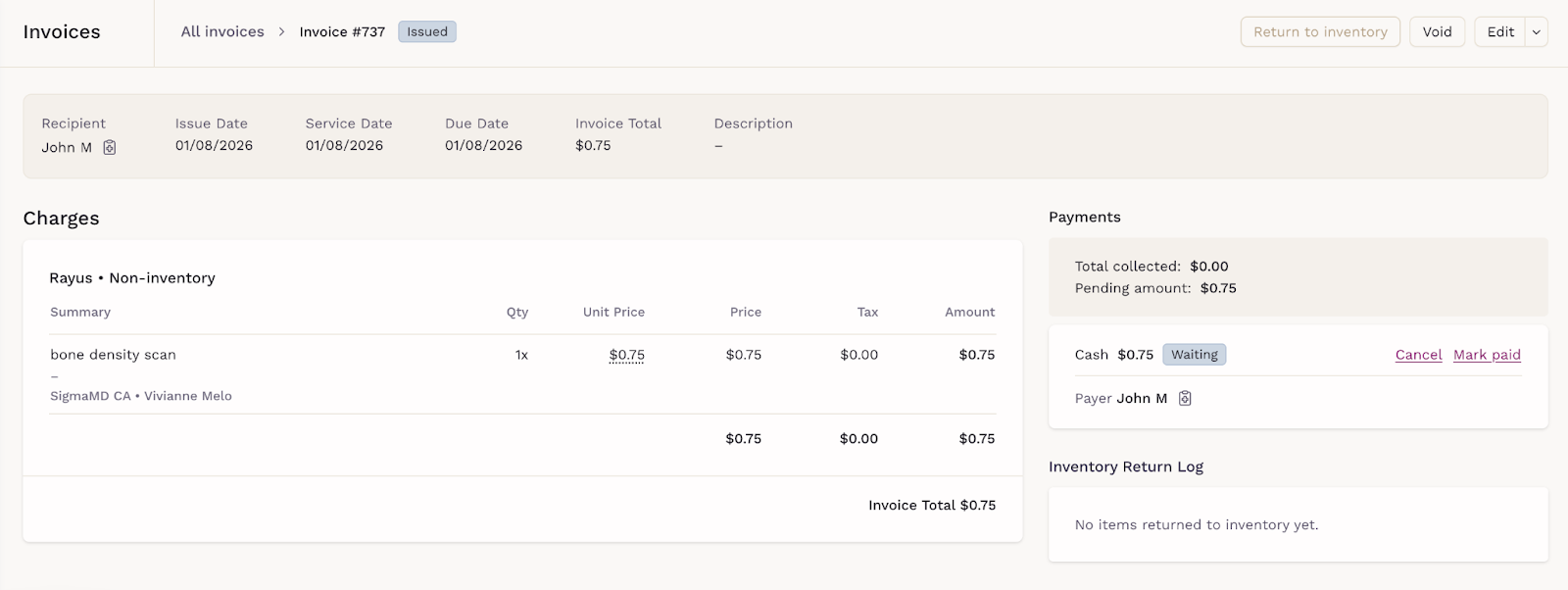 - Manual Transitions: Users can manually change the status of an invoice to issued, bad debt, or voided as needed.